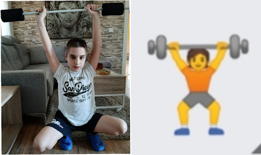 Diego nos regala una nueva serie de fotografías de otra parte de la actividad de expresión corporal que era imitar los emoticonos deportivos y que vuelve a bordar. Esta poniendo el listón alto y animando a otros a participar.